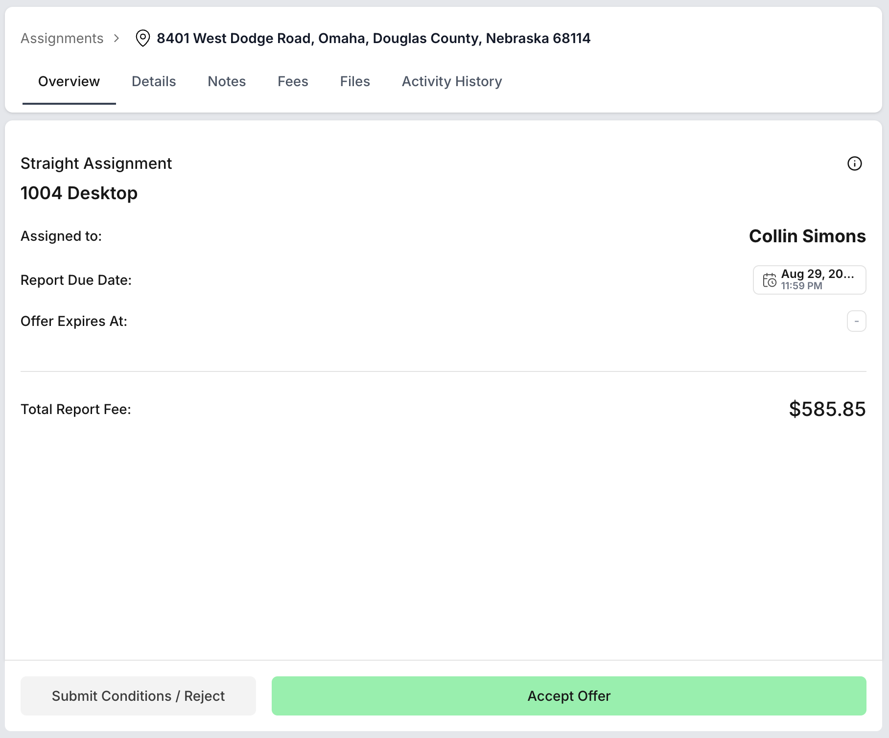 If you need to propose new terms for an appraisal assignment - such as a different fee or due date - here's how you can submit a condition offer.
