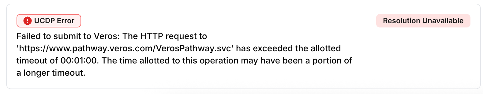 | Failed submit to Veros (timeout) | Failed to submit to Veros: The HTTP request to ... | Try upload again, if persist contact support@dwellingblocks.com |