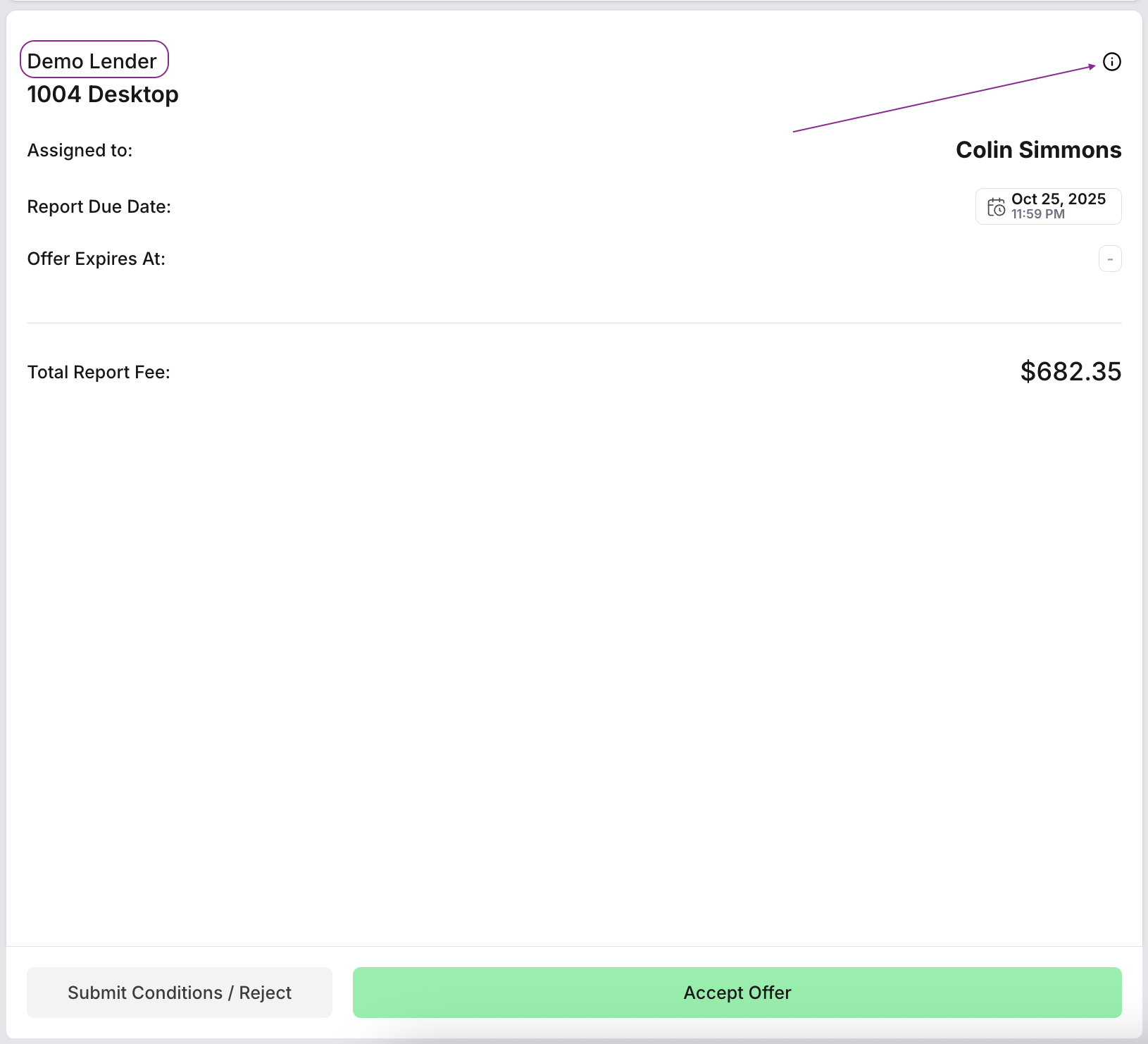 On the offer page, you'll find the lender's name displayed in the header next to the product type. For more details, simply click the small information (i) icon beside the lender's name.